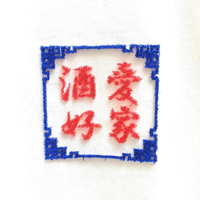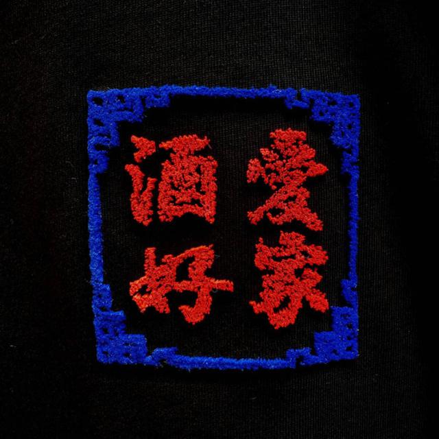 フロントの「酒愛好家」スクエアロゴは立体的なブラシ刺繍で存在感抜群です。