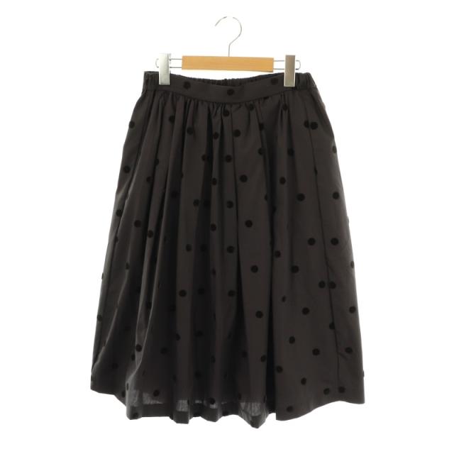 【中古】ミズイロインド ドットフロッキーギャザースカート ロング フレア チャコールグレー ダークブラウン