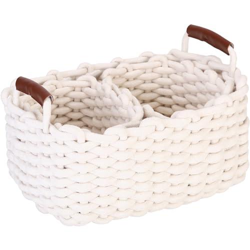 Sea Team 収納バスケット 北欧 カゴ 3点セット コットンロープ 編み込み 積み重ね 手編み 収納かご 籠 収納ケース おもちゃ タオル
