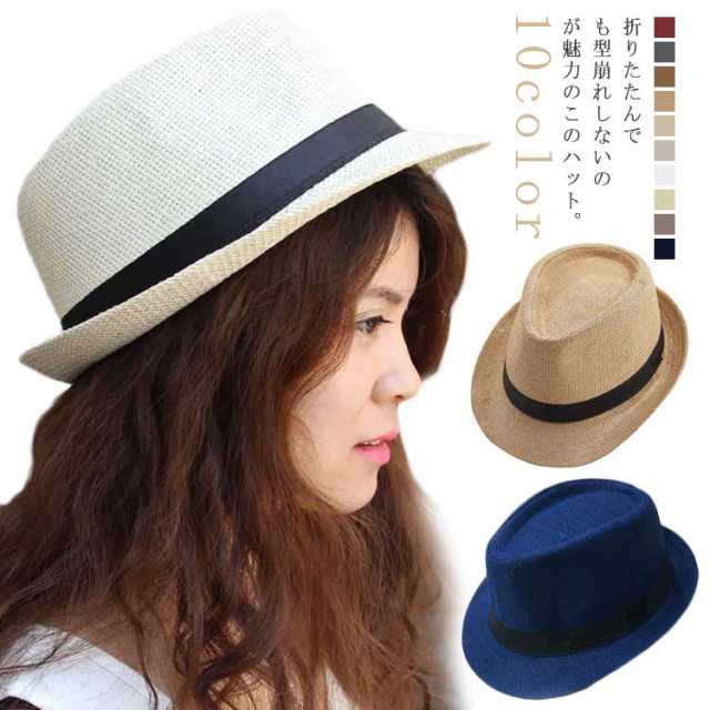 ハット メンズ レディース 麦わら帽子 春夏 折りたたみ ペーパーハット 大きいサイズ 折りたたみが可能なハット ペーパーポケッタブルハット ストローハット メンズ 送料無料 UV ベージュ アウトドア UV対策 ハット 中折れハット