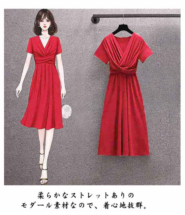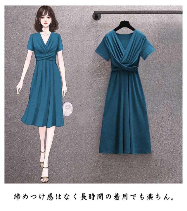 タイトワンピース 大人 おしゃれ 薄手 Vネック レディース スリム 夏 春 半袖ワンピ 着?せ 半袖 レディース ハイウエスト ストレッチ Aライン Tシャツワンピース 膝丈ワンピース シンプル 20代 30代 40代