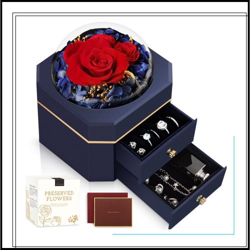 SENJWARM 大容量 ブリザードフラワー ジュエリーボックス 記念日 プリザーブドフラワー バラ 人気 誕生日 プレゼント 友達 結婚祝い 母の