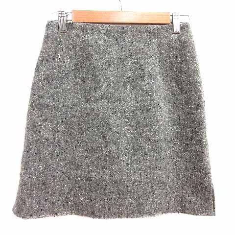 【中古】プリュック PLUCK 台形スカート ミニ ツイード ウール グレー /YK レディース