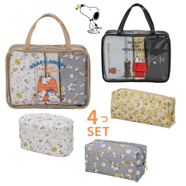 スヌーピー4点セット ピーナッツ SNOOPY 化粧品入れ 収納 ケース タブレット収納 iPad インチ かわいい ポーチ バッグ 旅行小物 トラベル 旅行バッグ スーツケース 保護 軽量