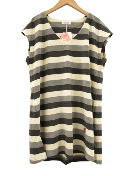 【中古】未使用品 TUNIC 鴨居 羊子 フレンチチュニック F グレー系 アイボリー系 トップス カットソー