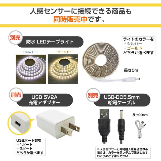 内容物:人感センサー本体×1、両面テープ×1,
