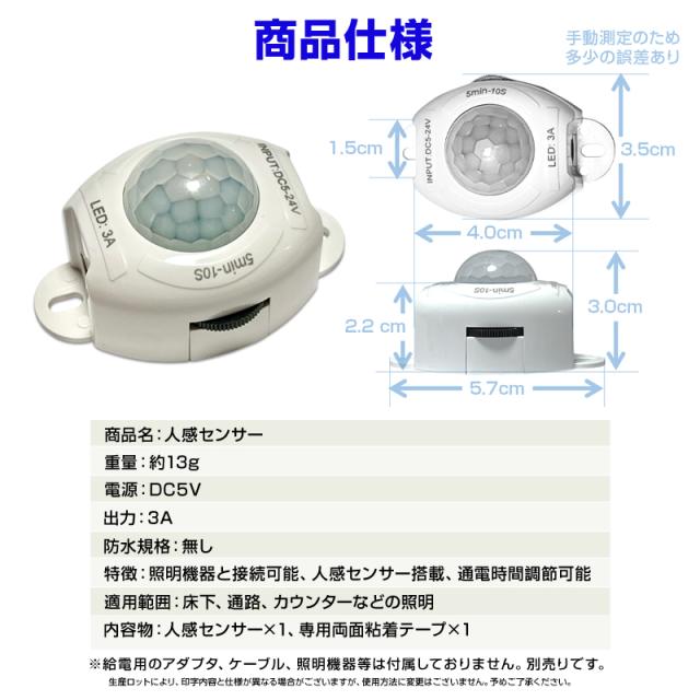PIRセンサー 人感センサー 部品 DC5V 赤外線センサー 電源 スイッチ 自動点灯 自動消灯 タイマー 省エネ 小型 DIY 後付け ナイトライト 足元灯 LEDテープライト