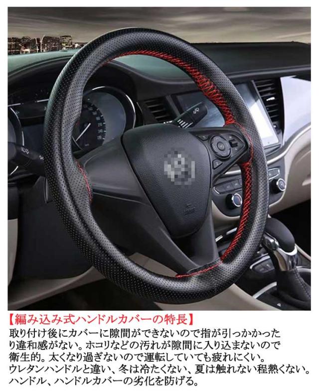 直径38cm 牛革 編み込み ハンドルカバー 汎用 通気 自動車用 手縫い 編み上げタイプ 簡単装着 軽自動車 ハンドル 軽自動車 汚れ防止 ステアリングカバー 滑り止め カバー 乗用車 内装用品 おしゃれ 春 夏 秋 冬 四季