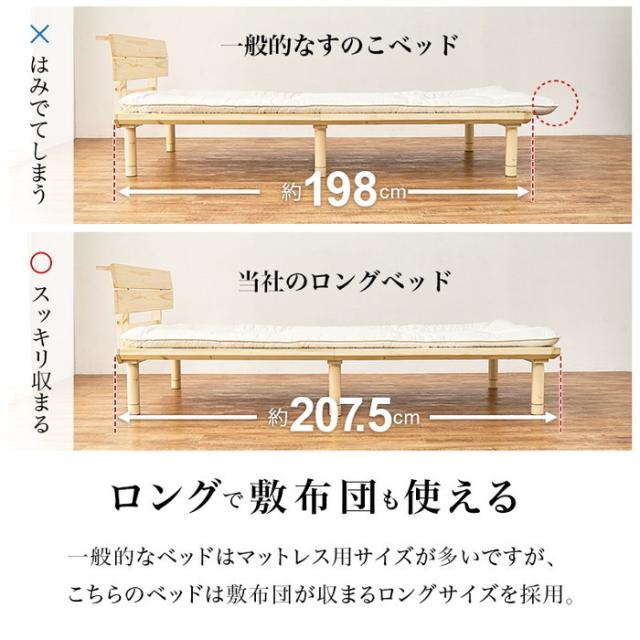 爽やかな天然い草を使用した畳マットをすのこベッドに合わせました。敷布団がそのまま使えるロングサイズです。床面高さは3段階調節可能。