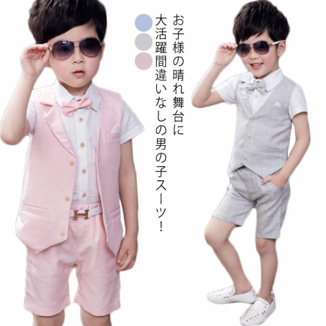 卒業式 ジレベスト スーツ 送料無料 子供スーツ 半袖ブラウス 半ズボン 男の子 男の子 フォーマル キッズ フォーマルスーツ ベスト 半袖 上下セット 入学式 子供服 セット ワイシャツ スーツ 男の子 蝶ネクタイ 男の子 3セット おしゃれ 3点セット