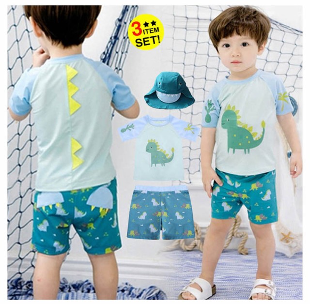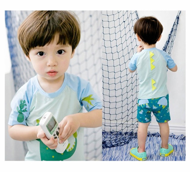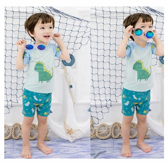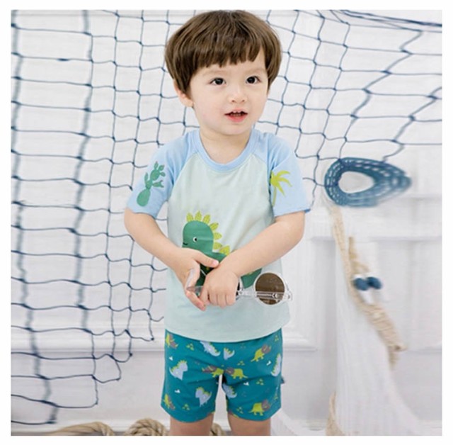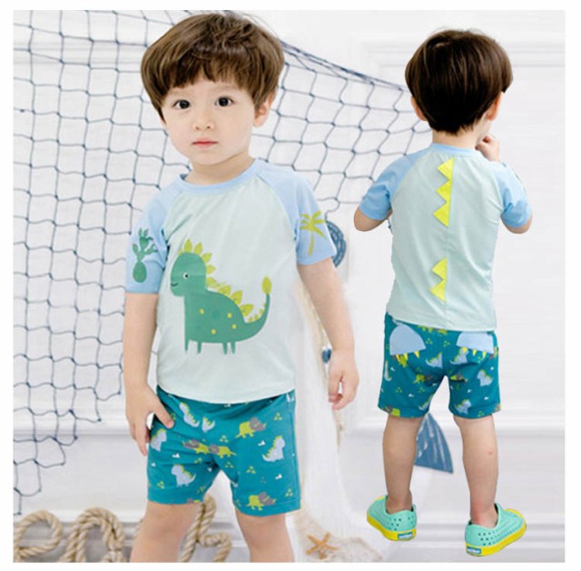 水着子供 男の子水着 息子 半袖 可愛い恐竜 パンツ水着 キッズ 砂浜 夏休み