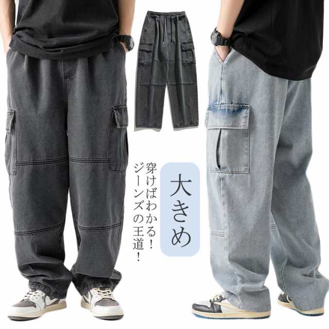 デニムパンツ デニム メンズ カーゴパンツ デニム ワークパンツ ミリタリー 大きめ ゆったり ワイドパンツ デニムカーゴ パンツ バギーパンツ 作業着 作業ズボン カジュアル ダンス衣装 ヒップホップ
