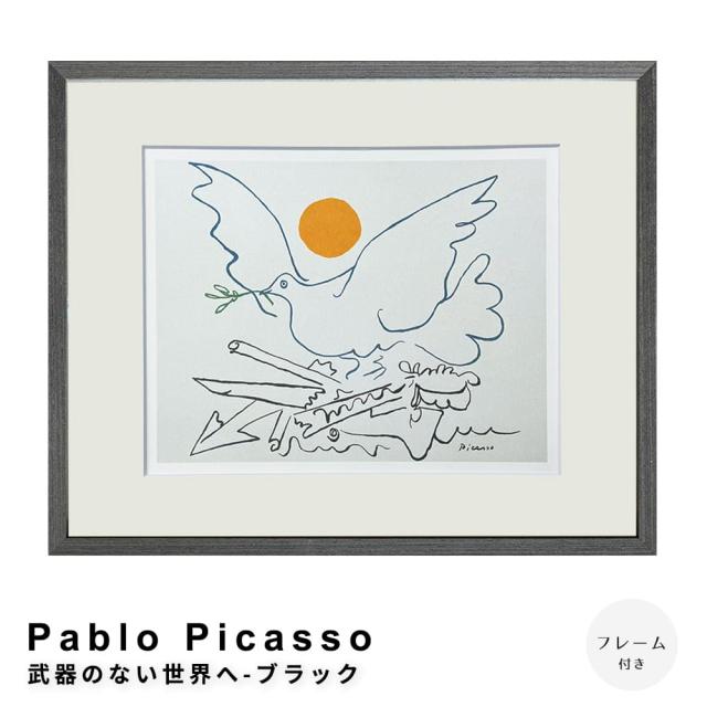 Pablo Picasso(パブロ ピカソ) 武器のない世界へ−ブラック アートポスター(フレーム付き)