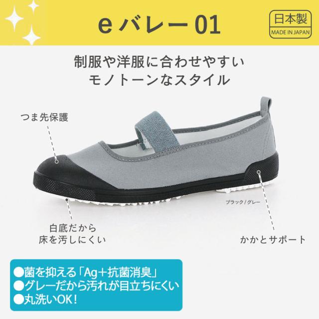 室内履きにぴったりなシンプルデザインのバレエシューズ「eバレー 01」。