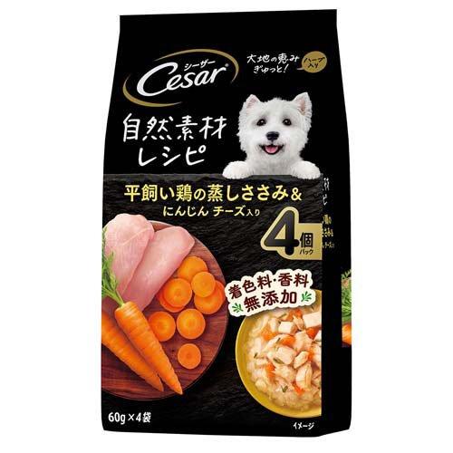 【12個セット】 マースジャパンリミテッド シーザー自然素材レシピ平飼い鶏の蒸しささみ&にんじんチーズ入り60g×4袋