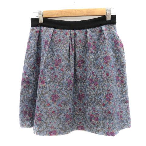 【中古】ジルスチュアート フレアスカート ギャザースカート ミニ丈 花柄 2 マルチカラー 紺 ネイビー レディース