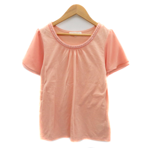 【中古】グローブ grove カットソー 半袖 パールビーズ シフォン L サーモンピンク /YK32 レディース