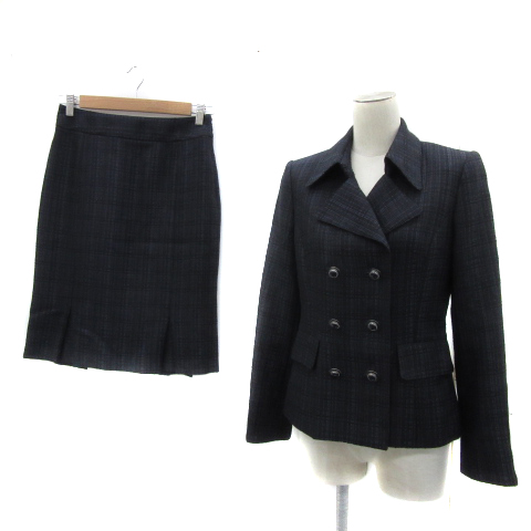 【中古】モディファイ セットアップ テーラードジャケット タイトスカート チェック柄 上40 L 下38 M 紺 レディース