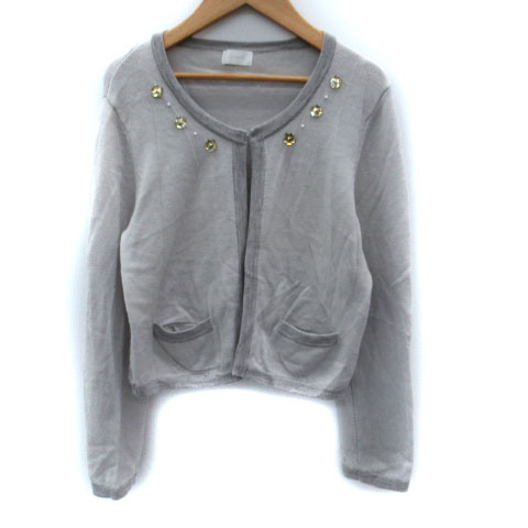 【中古】ハロッズ Harrods ニットカーディガン ミドル丈 ビジュー フェイクパール ウール グレー /SM20 レディース