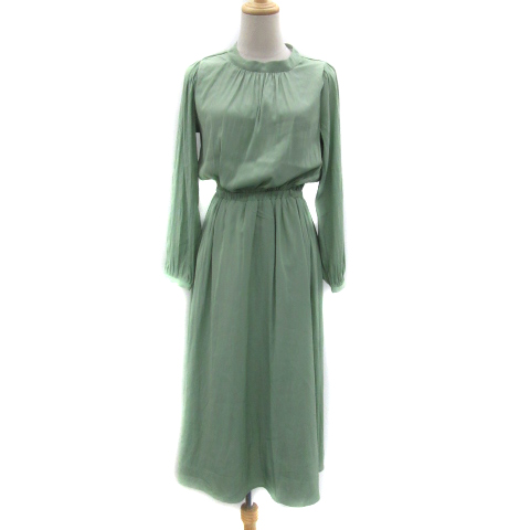 【中古】ドレスキップ DRESKIP ワンピース ロング丈 長袖 ラウンドネック 無地 M ライトグリーン /YS17 レディース