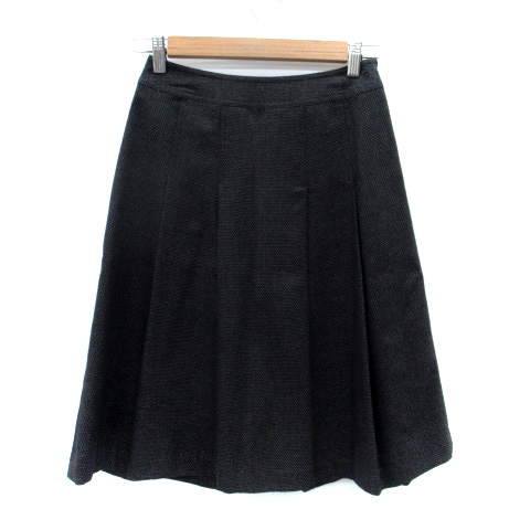 【中古】ノーリーズ Nolley's ボックスプリーツスカート ミモレ丈 総柄 38 M 黒 ブラック グレージュ レディース