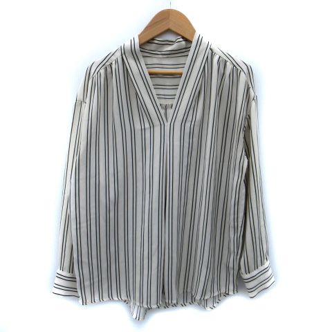 【中古】ロペピクニック ROPE Picnic ブラウス カットソー 長袖 Vネック ストライプ柄 アイボリー 紺 ネイビー