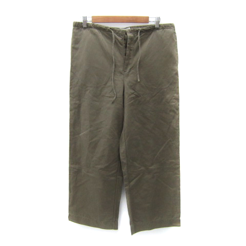 【中古】ティヤマイ t.yamai ワイドパンツ ロング丈 無地 ボタンフライ リネン混 麻 1 カーキ /SY9 レディース