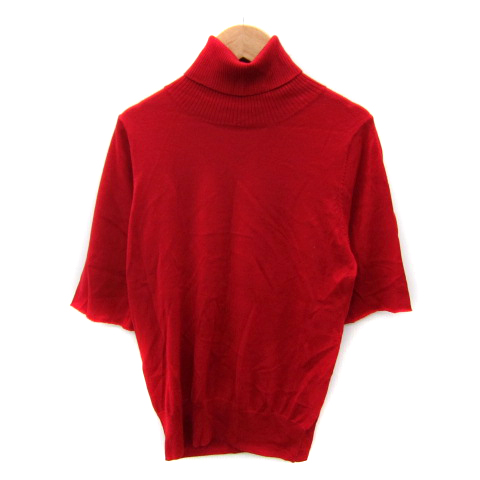 【中古】クローラ crolla ニット カットソー 半袖 タートルネック 無地 カットオフ レッド サンプル品 レディース