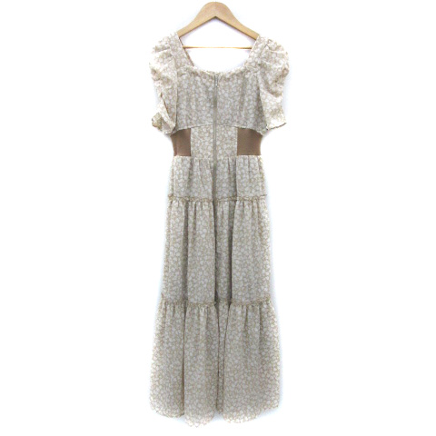 【中古】ダズリン dazzlin ティアードワンピース ロング丈 マキシ丈 半袖 総柄 S ベージュ /YM15 レディース