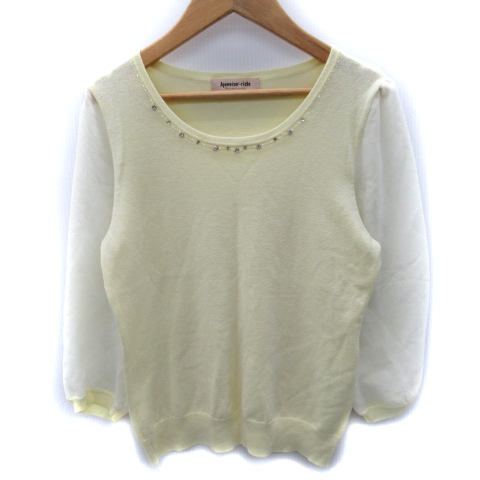 【中古】アプワイザーリッシェ ニット カットソー 七分袖 シースルー ビーズ ビジュー 2 黄 イエロー
