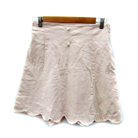 【中古】アンクルージュ Ank Rouge フレアスカート ひざ丈 スカラップ 無地 M 薄ピンク /SY22 レディース