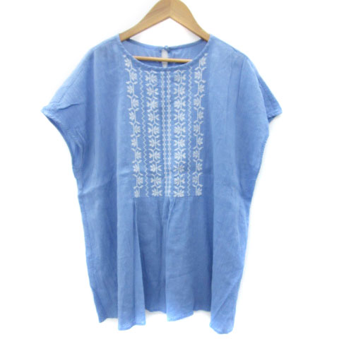 【中古】アーバンリサーチ ドアーズ URBAN RESEARCH DOORS ブラウス カットソー 半袖 刺繍 M 水色 /YM31 レディース