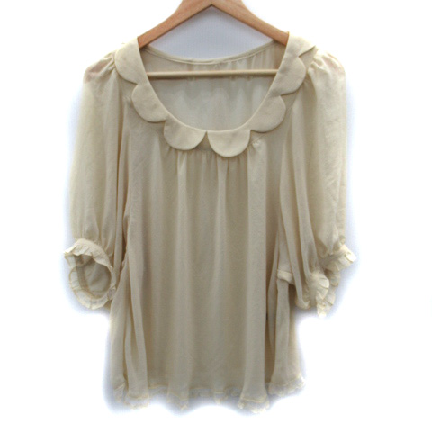 【中古】フランシュリッペ シアーカットソー 五分袖 ラメ フリル フェイクパール M ライトベージュ レディース