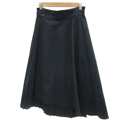 【中古】ビームスライツ ラップスカート 巻きスカート プリーツスカート ロング丈 無地 36 S 紺 レディース