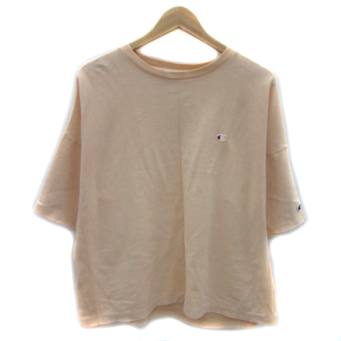 【中古】チャンピオン Tシャツ カットソー 半袖 ワンポイントロゴ刺? オーバーサイズ M サーモンピンク レディース