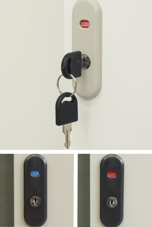 施錠・解錠状態がひと目で確認できます。スペアキーが1本付属しています。