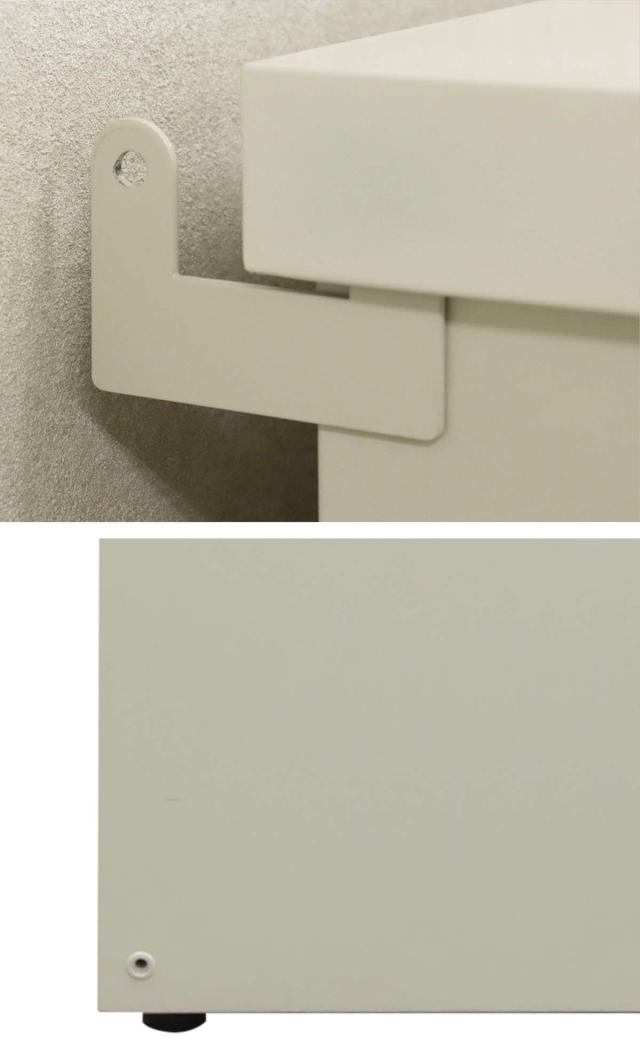 転倒防止のため、天面2か所にはワイヤー通し穴パーツ、底面2か所にはアンカー固定用パーツが付属しています。