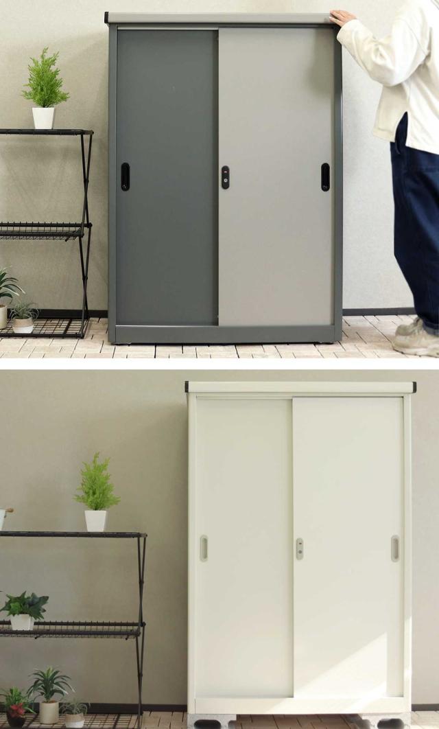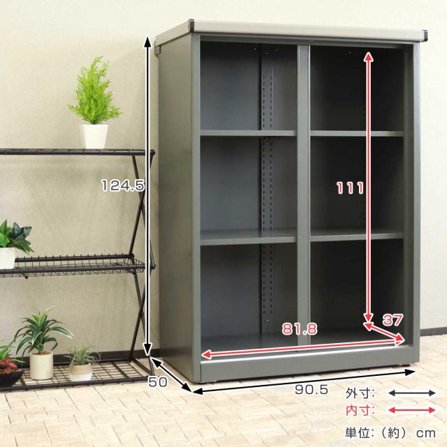 物置 Ave アーヴェ ラージ 幅90.5×奥行50×高さ124.5cm ( 屋外物置 幅90.5cm ベランダ 物置き 屋外収納 収納 ラック 大型 収納庫 倉庫 ガーデン ガレージ 庭用品 ストッカー ガーデンストッカー 鍵付き 可動棚 3段 屋外 )