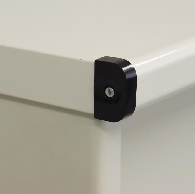 天板の前面2か所にはコーナーキャップが付いています。角が丸くなっているので万が一ぶつけてしまっても安心です。