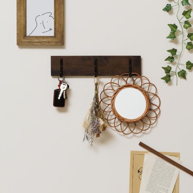 フック デコフック マグネット ウォールフック フック3連 壁掛け 幅38cm ( 収納 壁 ウォールハンガー 壁掛けハンガー 壁掛けフック ディスプレイ 壁面収納 壁付け 浮かせる収納 浮かせて 木製 キーフック )