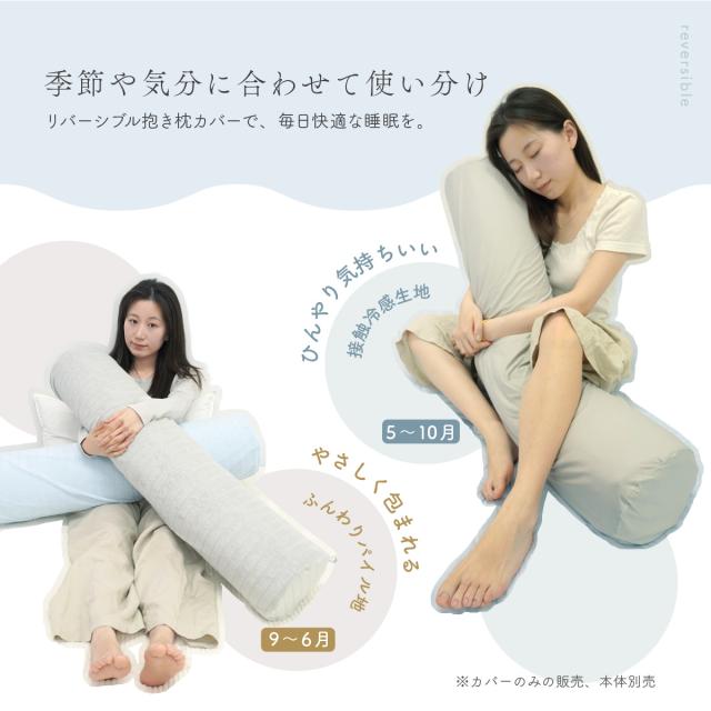 夏はひんやり接触冷感、冬はやさしいパイル生地。気温や気分に合わせて使い分けられる、快適な抱き枕カバーです。