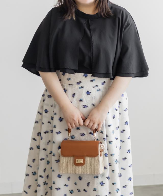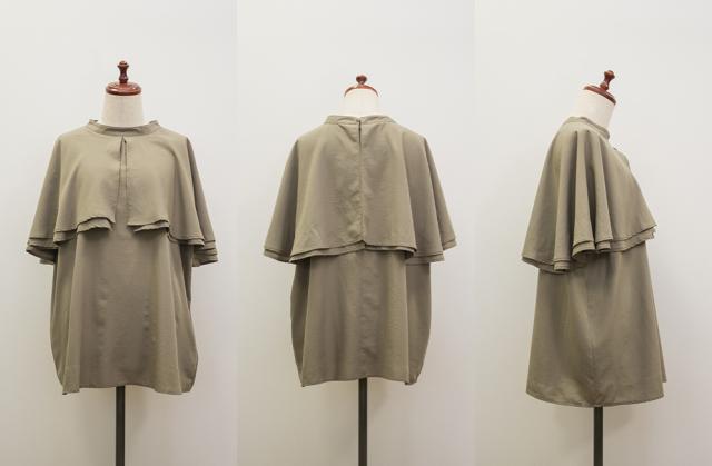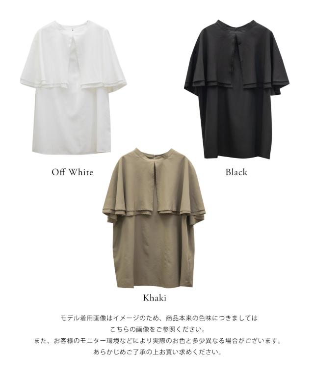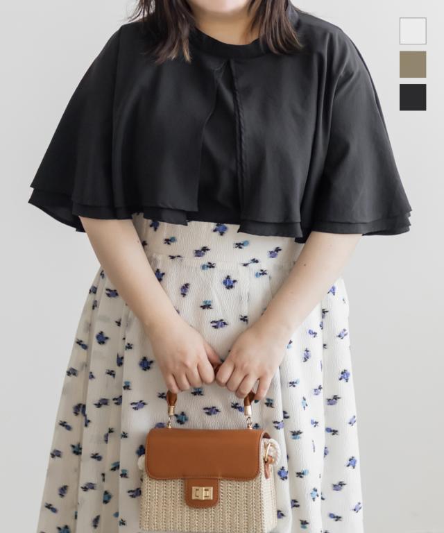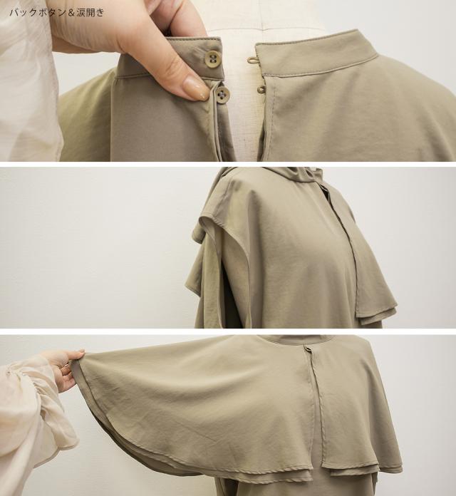 大きいサイズ/レディース/3L/4L/バンドカラーオーバーケープブラウス