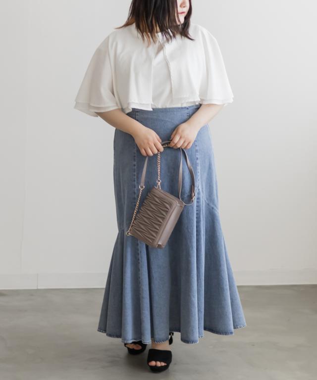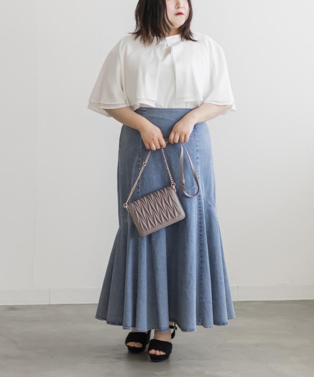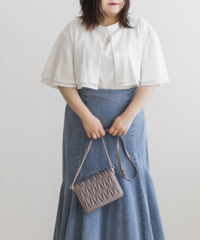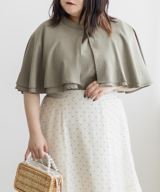| 3Lサイズを着用してゆとりのあるサイズ感でした。大きなケープカラーが顔回りを小さくみせてすっきりとした印象に着やせできます◎さらりとした肌ざわりなので着心地も良かったです!フリルのようなケープデザインが上品なブラウスなのでパンツにもスカートにも合わせやすく色々な雰囲気のコーデで着回しできそうです。内側はノースリーブのケープデザインなので、気になる肩周りをカバーして涼しく着用いただけます。二の腕もすっぽり覆ってくれる襟が華奢見せしてくれます!キャミワンピなどのインナーに襟を出して着てもかわいいです♪ |