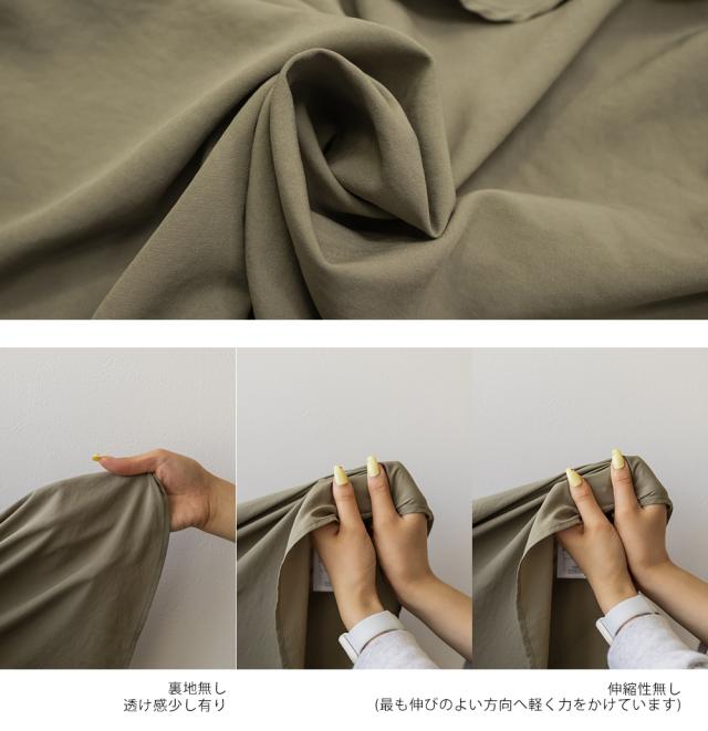 裏地無し、透け感少し有り、伸縮性無し オフホワイト,カーキ,ブラック