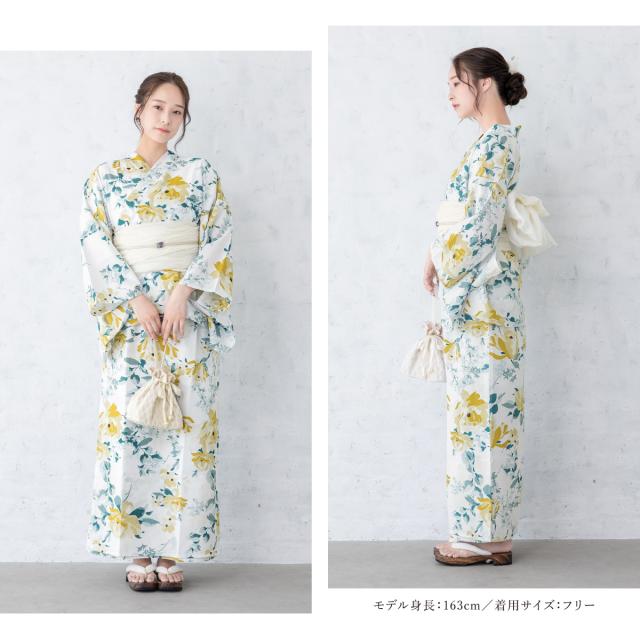 浴衣 セット レディース 二部式 セパレート スカート 浴衣セット 兵児帯 2way floro 白 黄色 薔薇 簡単 涼しい 大人 おしゃれ 可愛い フリー 下駄 送料無料