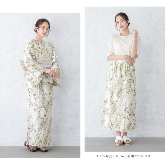 浴衣 セット レディース 二部式 セパレート スカート 浴衣セット 兵児帯 2way floro 白 黄色 薄ベージュ 鈴蘭 簡単 涼しい 大人 おしゃれ 可愛い フリー 下駄 送料無料