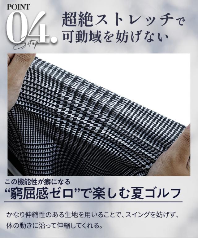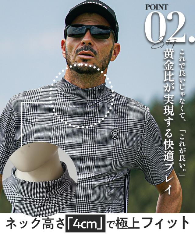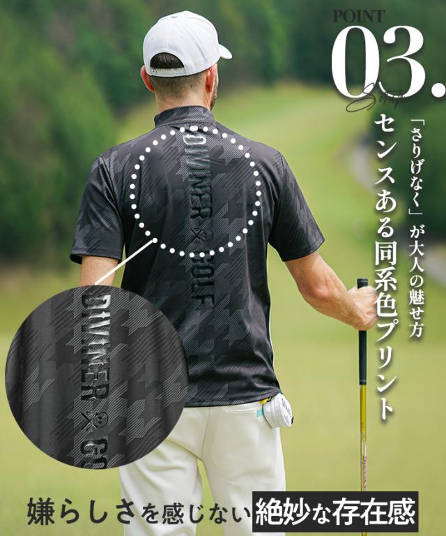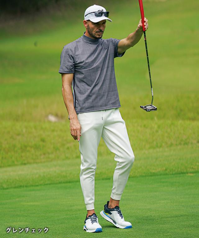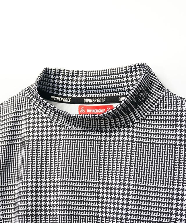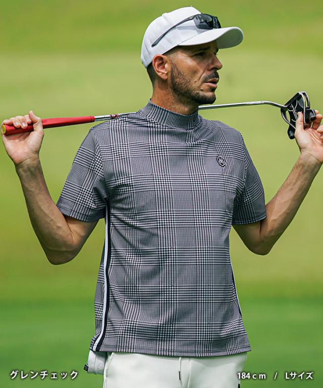 DIVINER GOLF(ディバイナーゴルフ)『チェック半袖モックネック』【チェック半袖モックネック】■Design / デザインチドリ柄とグレンチェックを組み合わせた総柄デザインが、さりげなく個性を引き立てるモックネックシャツ。首元を包み込むモックネックは、すっきりとした印象を与えつつ、風の侵入を防いで快適な着心地をサポート。ややタイトなシルエットは、動きやすさとスマートさを両立。一枚でさらりと着られる絶妙な厚みとデザイン性で、プレー中の快適さを追求しました。季節を問わず快適に着用できる、使い勝手のいい一枚です。