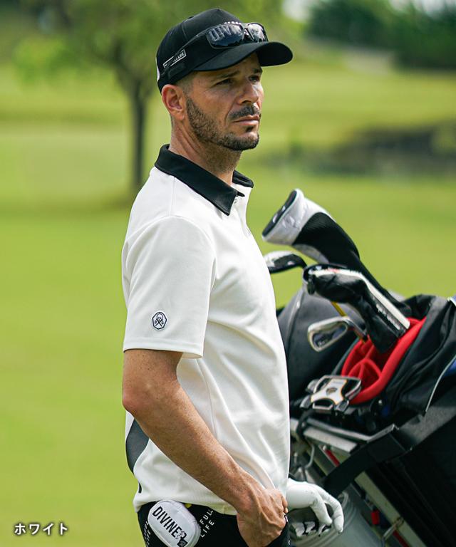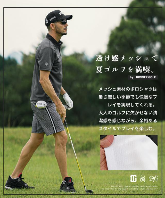 DIVINER GOLF(ディバイナーゴルフ)『メッシュバックラインポロ』【メッシュバックラインロゴポロ】■Design / デザインロゴで魅せる、爽やかで頼れるポロシャツ。ゴルフ場でふと誰かの視線を感じたら、それはきっとこのポロシャツのせい。背中にすっと入った縦ロゴが、派手すぎないのにしっかり印象を残す、絶妙なアクセントになっています。素材は通気性抜群のポリエステル100%メッシュ。風をよく通し、汗をかいてもベタつきにくく、暑い日のラウンドでもずっと快適。さらに、サラッと乾いてお手入れも簡単だから、洗い替えにもう一枚欲しくなるはず。動きやすく、リラックス感もありながら、見た目はきちんと。気取らず着られて、でもどこか品がある。ゴルフスタイルにぴったりな3色展開です。