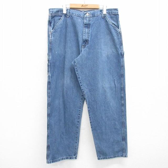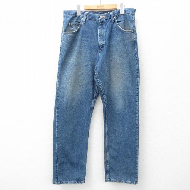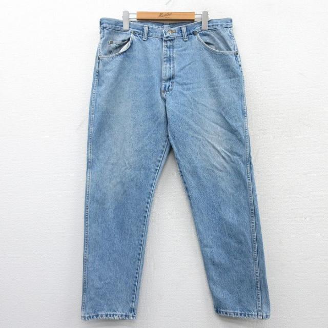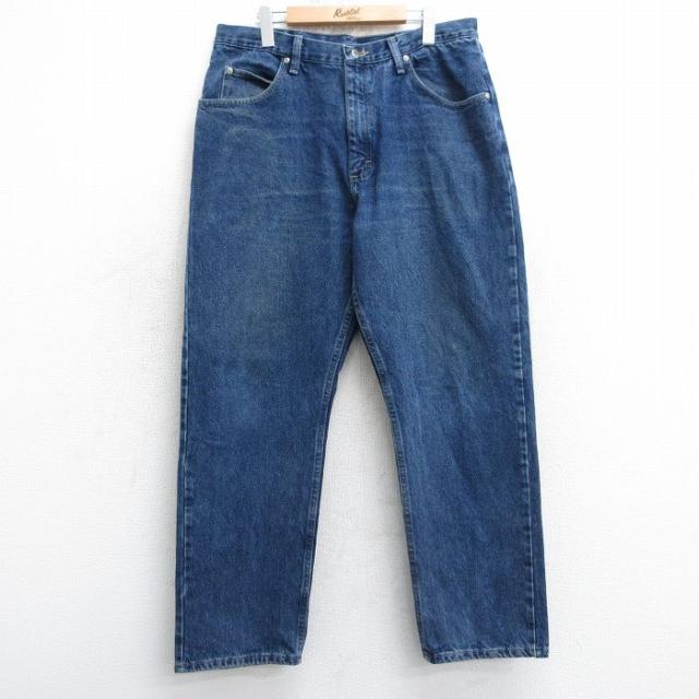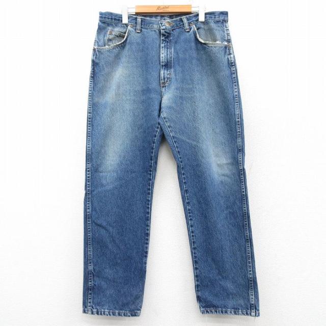 古着 ラングラー Wrangler ジーンズ メンズ ヒゲ 紺 ネイビー デニム W38 中古 ボトムス ジーパン Gパン ロング パンツ 中古 古着