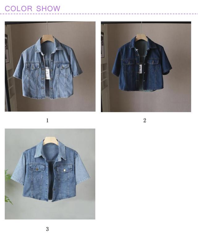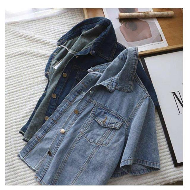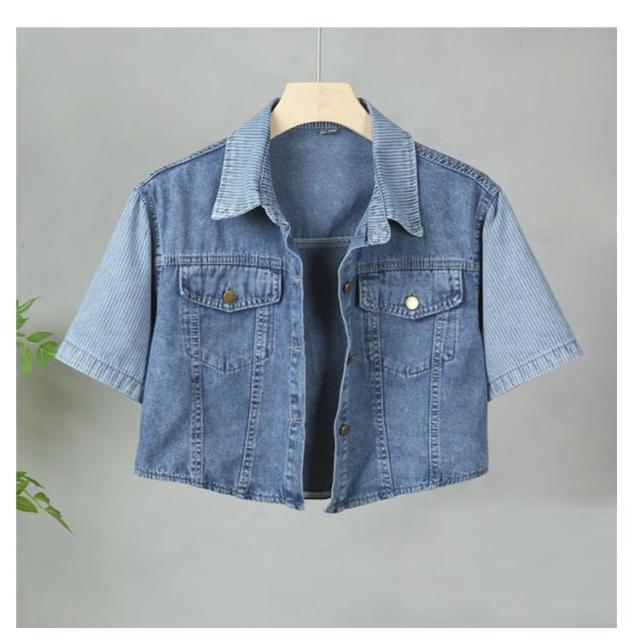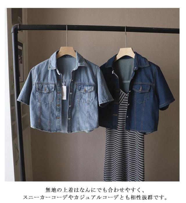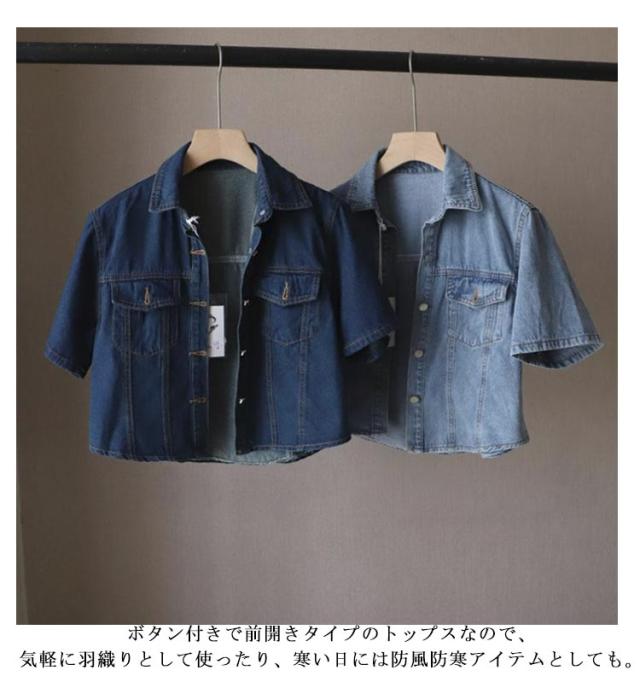デニムジャケット レディース ジャケット 半袖 前開き ショート丈 トップス アウター ライトアウター 薄手 シンプル きれいめ 無地 ポケット付き ゆったり 通勤 OL シンプル 大人 可愛い 重ね着 20代 30代 40代 おしゃれ カジュアル